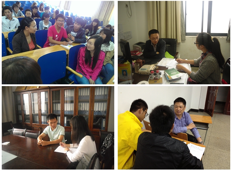 随着“两访两创”活动在全校如火如荼地进行,16877太阳集团安全入口在认真学习省委及高校工委关于“两访两创”活动精神基础上,以“交流思想、立德树人、促进和谐、推动发展”为主要任务,以“教师全覆盖、学生全覆盖”为基本要求,9月下旬至10月上旬针对太阳官网2012级全体新生进行了面对面的交流与访谈。16877太阳集团安全入口院长夏火松、分党委书记黄少年、副院长杨卫丰、副院长王济平、分党委副书记肖信华及管院专业老师、12级全体班主任、辅导员为本次新生访谈的访谈人。