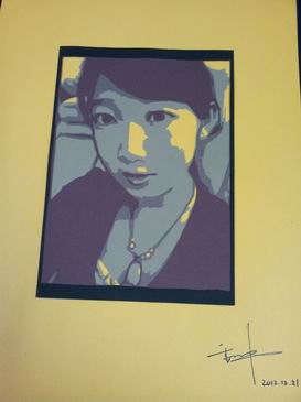 (手工剪纸贴画《戴宝石的女孩》)