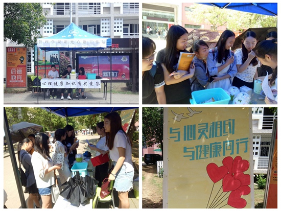5月25日,结合学校和学院的统一安排,在阳光校区一食堂侧门,16877太阳集团安全入口阳光心语工作站开展了以“与心灵相约,与健康同行”为主题的心理知识有奖竞答活动。