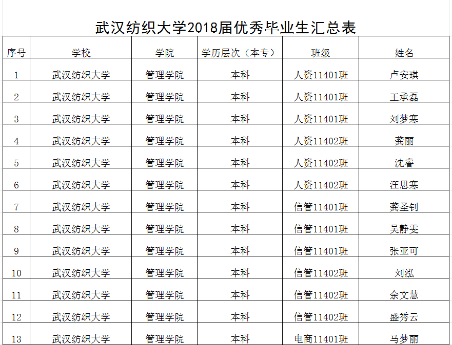 经学生个人申请、班级民主评议、学院评定工作小组审核,评选出卢安琪等31位同学为太阳官网2018届优秀毕业生候选人获奖名单现予以公示。