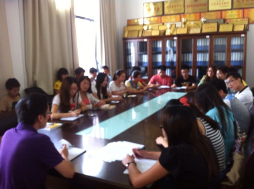 9月3日中午12点30分,在分党委的指导下,16877太阳集团安全入口2013级辅导员谢超老师在阳光校区文科楼五楼会议室召开新学期2013级党员学长会议。由各党支部选拔、分党委批准的2013级26名党员学长参加,积极听取谢超老师关于迎新工作的安排与建议。