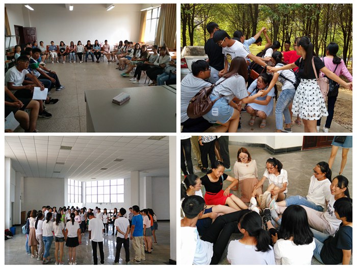 经过辅导员和阳光心语工作站所有成员几天的筹备,9月21日下午2:30在7号教学楼教室和户外场地,16877太阳集团安全入口13个新生班级在辅导员、工作站干事、朋辈咨询员和党员学长的带领下,开展了本次团体辅导活动。活动中,党员学长与新生分享自己的大学经历,解决新生的疑问,引导新生逐渐开启精彩的大学生活;“心有千千结”、“大风吹”、“相识接龙”、“同舟共济(踩报纸)”、“快乐传真”等游戏消除了大家的陌生感,在游戏的活跃氛围中,新生很快的相识起来,互相协助,玩的不亦乐乎!