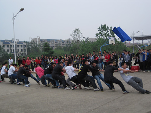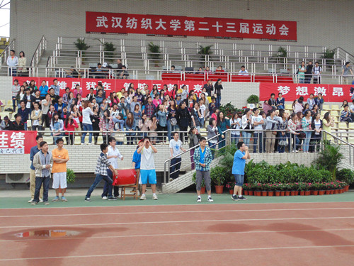 在拔河比赛、径赛等现场,无论是什么项目,只要管院出击就能听到看台上如雷的鼓声与“管院,加油,管院,必胜”的口号,现场士气高涨,让人振奋,啦啦队员们分享着胜利的喜悦。