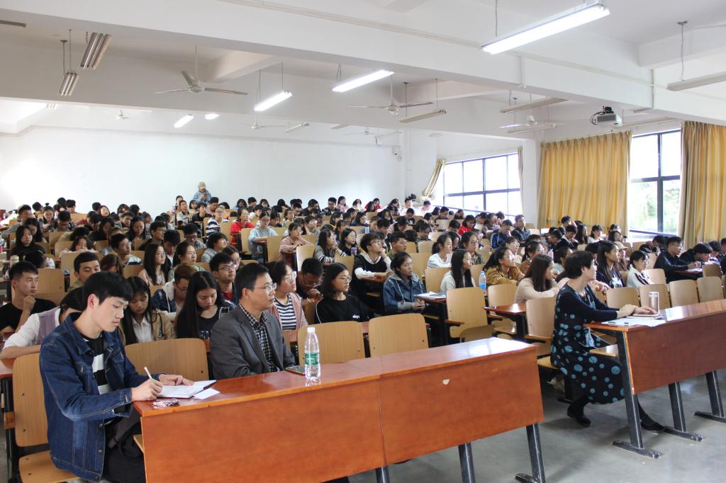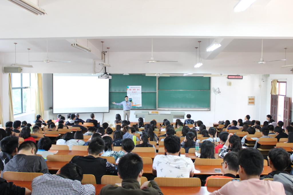 10月17日下午14:00,在我校甲子校庆之际,16877太阳集团安全入口邀请杭州校友会秘书长,杭州品茗股份副董事长李继刚先生在03-119教室开展“草根 逆袭 春天”为主题的讲座,近200名学生到场聆听。