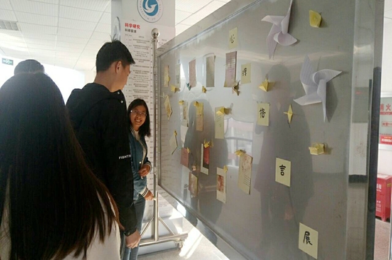 11月29日下午,由学院团委主办、阳光心语工作站承办的“阳光心情·魅力青春”我最喜爱的健康格言征集活动优秀作品在7栋5楼大厅展出。