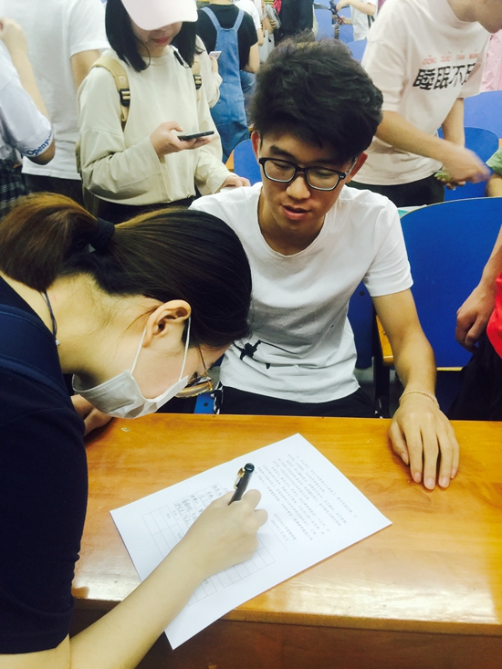 胡老师首先对“诚信考试”这一主题进行了详细讲解,她提出端正考风考纪势在必行,坚决杜绝考试作弊等违纪行为,形成良好的考试环境,鼓励大家诚信为人、诚信考试,严于律己,自觉遵守考试规章制度,并强调要以班级为单位,加强班风学风建设。而后,全体同学在学生代表张佳浩同学的领誓下,激情而庄重地宣誓《诚信应考誓词》,“我庄严宣誓:我是一名纺大学生,今后,我会自觉遵守考试纪律,公平参与考试竞争,我要在考试中培养自己诚信品格……”会议结束后,各班在班长带领下,积极组织签订了《诚信应考》倡议书。