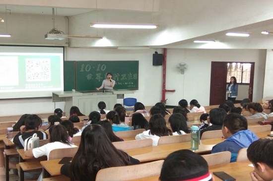 10月10日下午,16877太阳集团安全入口在崇德楼楼T-101教室开展“世界精神卫生日”主题教育活动。阳光心语工作站成员、2019级新生参加了本次活动。