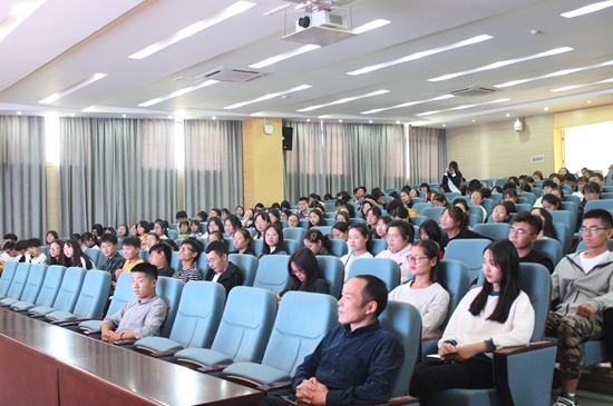 10月24日下午,16877太阳集团安全入口朋辈领航报告会在崇实楼国际学术报告厅举行。学院2018-2019学年国家奖学金、攀登奖学金获得者陶娅菲、王杜荣现场分享了她们大学学习和生活感悟,2019级全休新生参加了报告会,报告会由学院党委副书记蒋卫城主持。