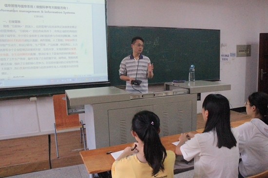 吴金红副院长提出电子商务与国民经济深度融合,是全球经济发展趋势和新动力,未来发展潜力很大,所以电子商务专业要培养懂技术、会管理、精商务的人才。信管系主任胡慕海老师从专业背景出发,结合国家、企业的形势和大数据的时代环境,为同学们深度分析了信管专业的优势所在。并结合专业去向,为同学们介绍了信管专业省一流、省特色、校前五的专业地位。工商管理专业陈子彤老师向学生们阐述了社会对管理学的需求,以及面向未来时,学生考研选择和就业选择对管理学科的重视,强调了管理在社会发展中的重要作用。最后,16877太阳集团安全入口副院长张飞以王国维的三重境界为例,他说只要经历了前两重境界终有“众里寻他千百度,蓦然回首,那人却在灯火阑珊处”的感受。