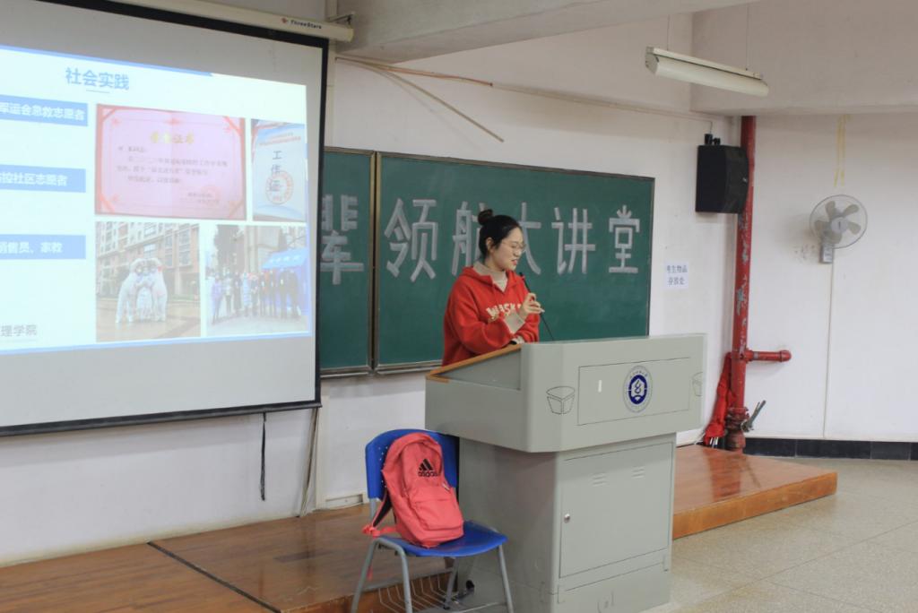 崔雨晴同学在分享会上首先用一个视频《为什么人永远不会真正成功》开场,随后,她简要介绍了自己大学三年的成绩及获奖情况,并和在场同学分享了自己的心得:选择进步而不是平庸,选择学习而不是娱乐,选择尝试而不是逃避。最后,崔雨晴用一句名言:“你不知道你现在学的有啥用,当你在未来某一天看时,其实所有的事情都联在一起,点连成线,塑造成了一个完美的你。”结束了本次讲座。