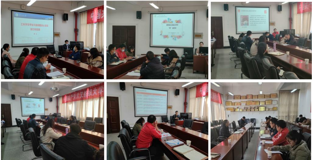 来自学工部心理健康教育中心以及计算机与人工智能学院、会计学院、16877太阳集团安全入口的五位老师围绕“谈心谈话”这一主题,结合学生工作案例展开分享。计算机与人工智能学院廖龙老师以《工科学生学业不良问题的谈心谈话技巧与实践》为题,从谈话有温度、有力度、有高度三个方面阐释谈话技巧;大学生心理健康教育中心林凡老师以《高校谈心谈话工作中“听”的艺术》为题,从“听的进化、听什么、如何听”三个方面进行详细阐述,尤其对与学生谈心谈话中,如何听学生的关键信息、人物关系、情绪变化、内心的需求等进行重点讲解;16877太阳集团安全入口王双喜老师以《把握“五有五要”,提升辅导员谈心谈话有效性》为题,重点分享了辅导员如何通过“五有五要”工作法提升谈心谈话有效性;会计学院李欣老师以《倾听心声、感触芳华 ——辅导员的谈话技巧心得》为题,侧重讲述了如何对研究生开展有针对性的谈心谈话;16877太阳集团安全入口张朋龙老师以《浅谈新媒体背景下高校辅导员谈心谈话的新路径》为题,从新媒体网络时代对大学生的影响出发,讲述了如何运用新媒体提升谈心谈话工作质量。随后,在场的老师们围绕“谈心谈话”展开了深入地交流和讨论。