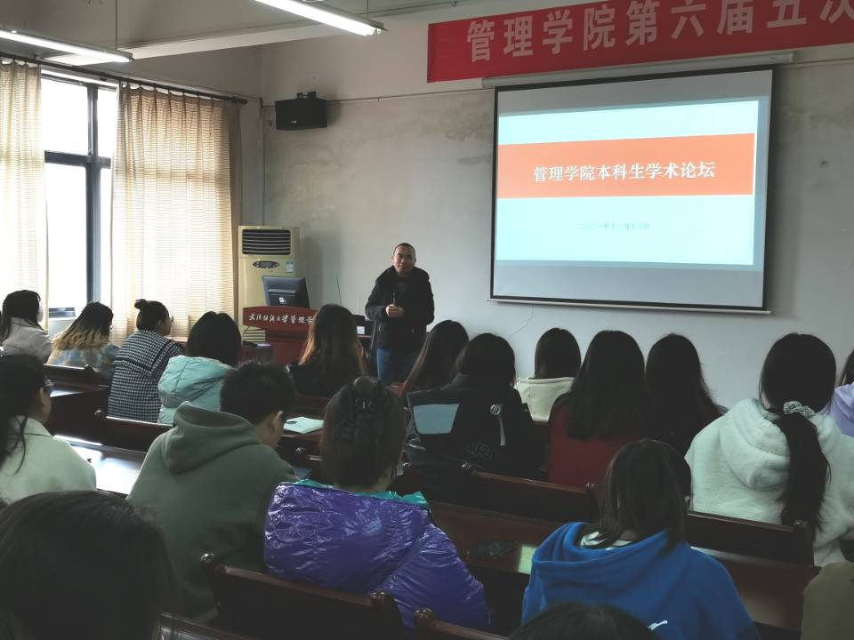 张飞副院长对三名同学的分享做点评。他指出本次论坛既是明年全国大学生市场调查与分析大赛赛前动员会,更是备赛培训辅导会,三名同学各自分享的参赛准备、论文撰写、PPT汇报对在场即将参赛同学一定是裨益良多;同时张院长还表示学院将持续为广大同学搭建学术创新平台、提供物质保障,努力让所有同学都能在学术探究和学科竞赛中有所收获、有所成长。