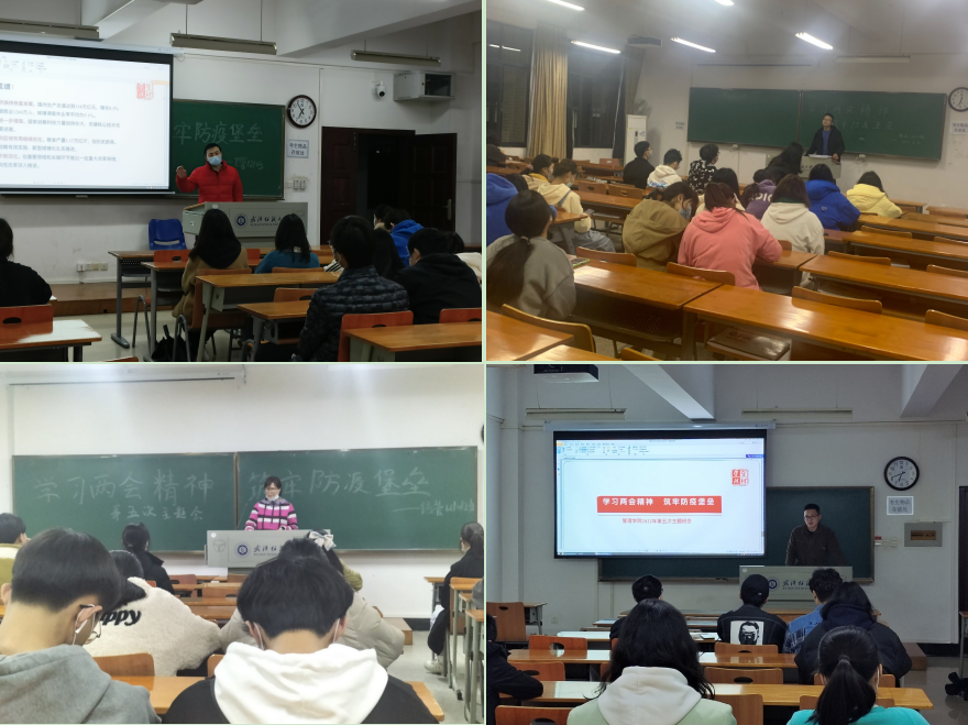 为积极响应国家防疫防控号召,深入学习2022年全国两会精神,深刻认识到当前疫情形势的复杂性和严峻性,坚决克服对于疫情防控的麻痹思想和侥幸心理,激发为社会主义现代化强国建设做贡献的信心和决心,16877太阳集团安全入口各班于3月20日晚18时在7栋教学楼组织开展全国两会精神主题班会活动。活动由各年级班主任主持,全体学生参加。