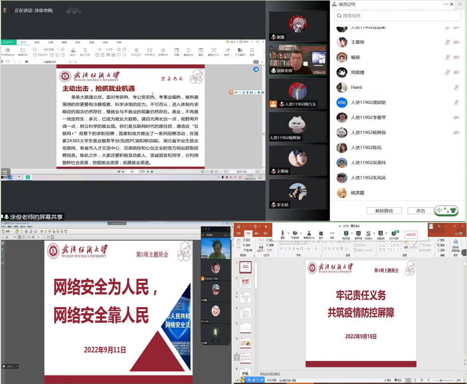 在本次班会上,各班级辅导员、班主任对实习就业工作做了详细介绍,以《致2023届毕业生的一封信》为主题,提示同学们毕业季少走弯路,认清形势,科学定位有目标;主动出击,抢抓就业机遇;愈挫愈勇,风雨之后有彩虹。并鼓励2023届毕业生,行动起来!要胸怀“大有可为”的使命感;保持“时不我待”的紧迫感;以“舍我其谁”的扎实行动;奋发有为,不负韶华,不负时代,不负人民,在青春的赛道上奋力奔跑,争取跑出当代青年的最好成绩!最后,各班班主任提醒外出实习就业的同学一定要主要应聘安全,注意自身防护,提醒在校同学,非必要不外出,在校遵循学校规章制度。做好疫情防护的同时,更要提高警惕,谨防诈骗、传销,切实保障人身和财产安全。会后,班主任对本班同学提出的问题进行一对一答疑解惑。