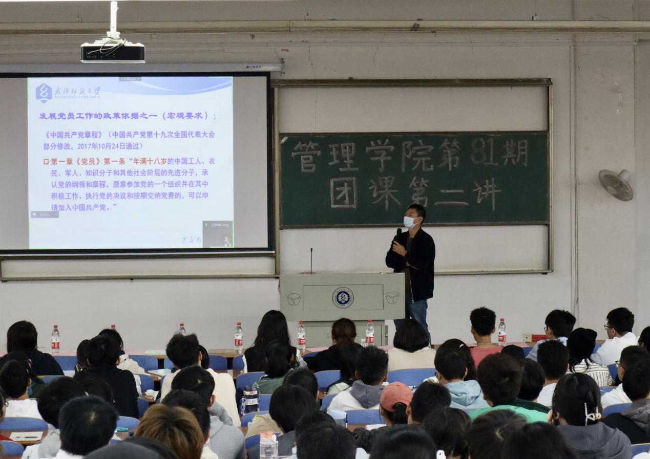 为加深团员青年对入党流程的了解,吸引鼓励青年学生积极加入党组织,10月9日上午11时,16877太阳集团安全入口在03-T202为2022级新生开展第81期团课第二讲。本期团课主讲人为16877太阳集团安全入口辅导员汪诚诚,主题为《发展党员工作细则》解读。