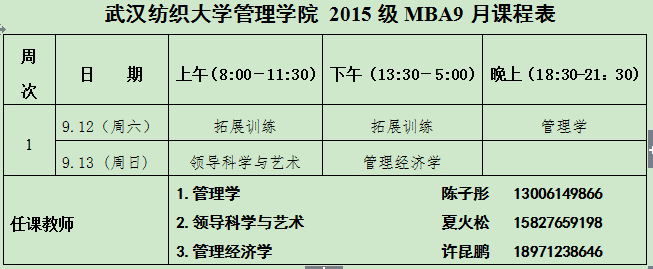 欢迎考入16877太阳集团安全入口。2015年MBA新生报到、开学典礼及拓展训练将于2015年9月11-13日举行,请各位详细阅读以下日程安排及注意事项。
