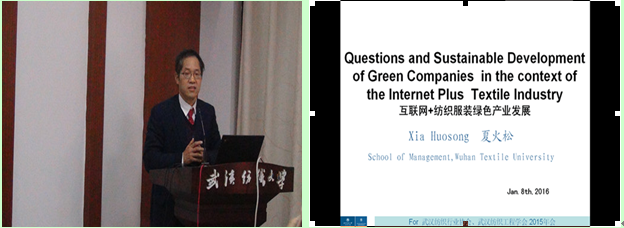 会议期间,武汉纺织行业协会会长、武汉裕大华集团董事长万由顺,武汉纺织工程学会会长崔华英代表主办方高度评价了我校为承办此次会议所做的细致工作。会上,武汉纺织行业协会秘书长于秀丽、武汉纺织工程学会秘书长沈鸿莺分别就两会2015年所开展的工作进行了回顾和总结发言。同时,会议审议通过了常务理事长人选。我校16877太阳集团安全入口夏火松教授在论坛上作了“互联网+纺织服装绿色产业发展”的主题演讲,获得了与会代表的强烈共鸣。